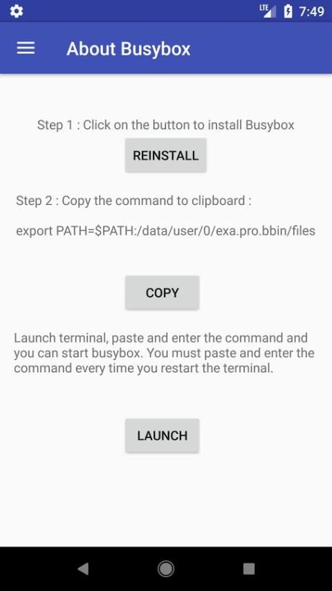 Namun, menggunakan Busybox di android diperlukan akses root untuk sebagian besar aplikasi. Tapi, karena android adalah dasar pada kernel linux, kita akan dapat menjalankan Busybox dengan menggunakan beberapa linux hack.