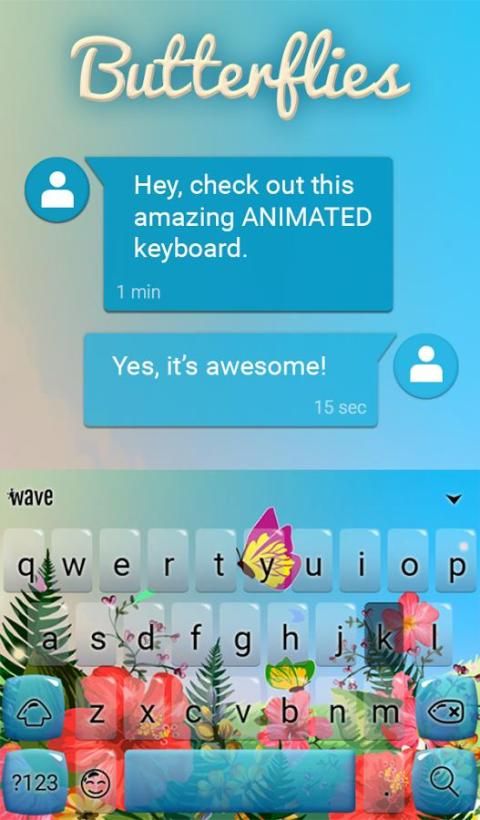 Kupu-kupu Animasi Papan Tuts adalah tema yang dirancang untuk Wave Keyboard. Untuk mengaktifkan tema ikuti instruksi dibawah ini.