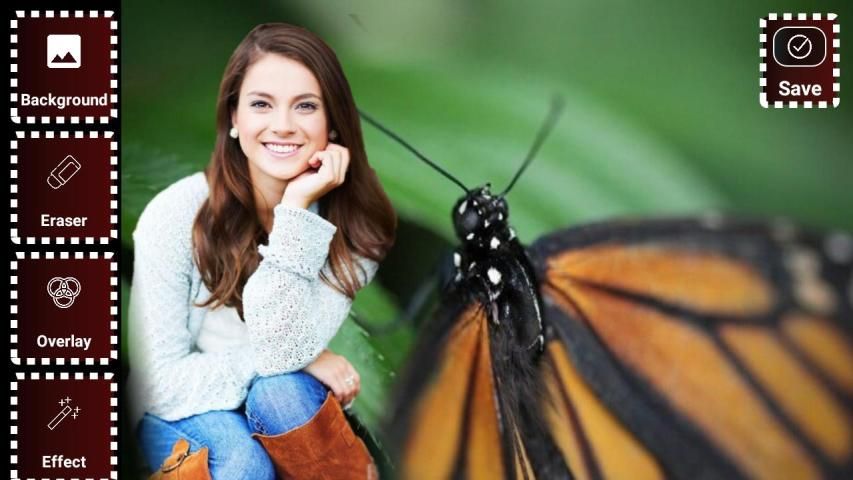 cut photo editor app Cut any portion of any photo and place on another photo like cropper and editor. Cut photo and put on Butterfly. You can cut a face or body to paste on a butterfly pictures.