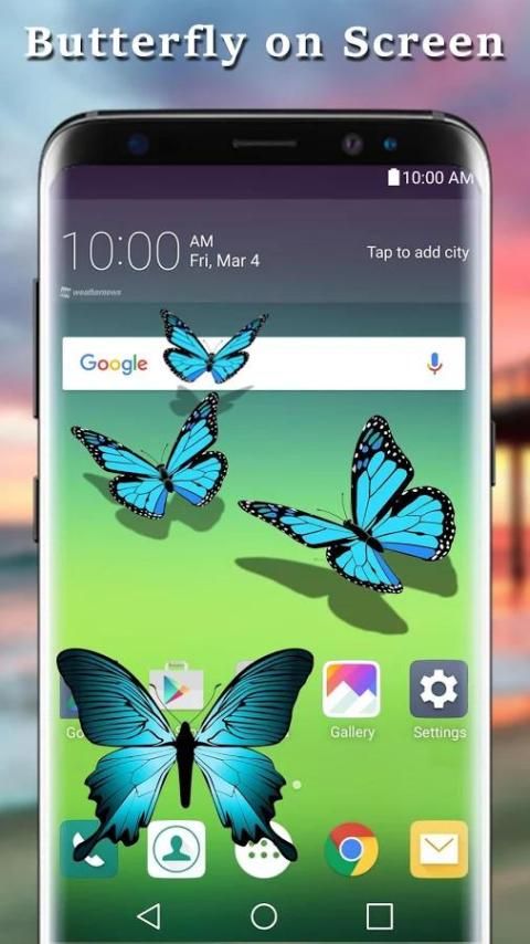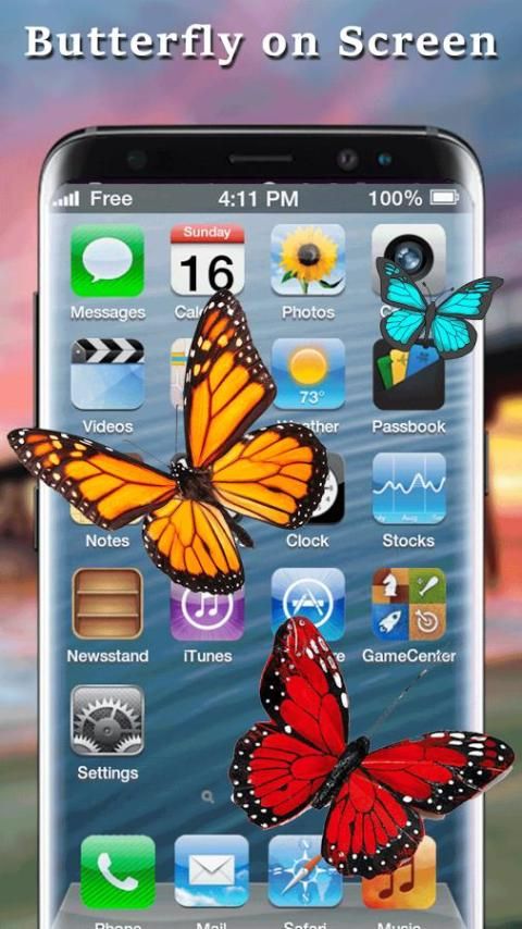 "Kupu-kupu di layar lelucon" adalah sebuah aplikasi hiburan yang akan menampilkan animasi Butterfly pada layar ponsel Anda.
