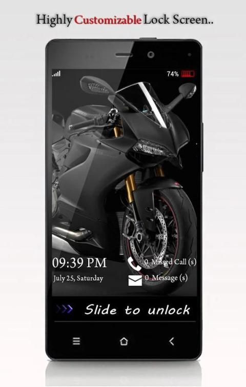 Presenting an awesome & Latest Lock Screen based on sliding concept which contains `Byke HD wallpapers` and different types of animations to Unlock and Lock your Phone.