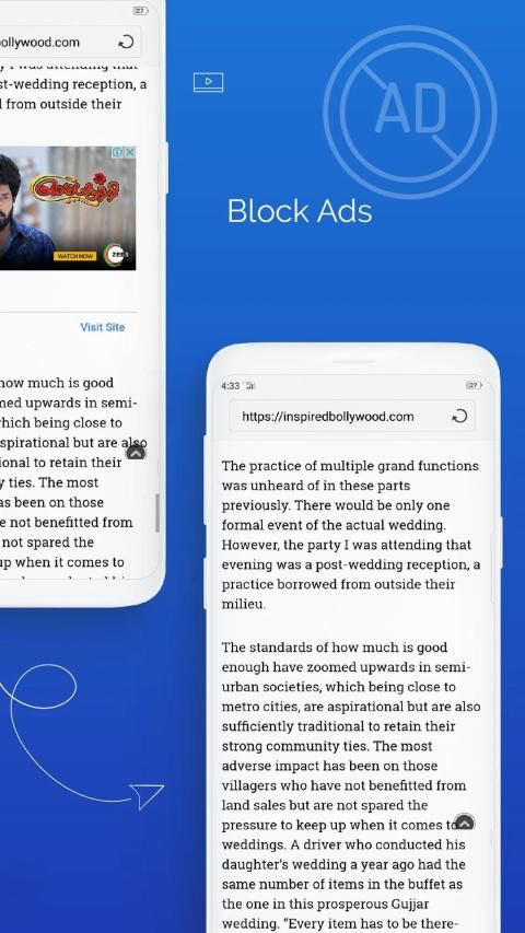 Bytes Browser is developed to enhance the user’s browsing experience in Android devices. We have applied cutting-edge technology to develop the finest user-friendly design. While roaming around the web and accessing various sites, you can add them in the bookmarks. Therefore, it becomes easy to find them afterward or reach your favorite sites easily. You can also search for any previously visited sites or content in the History section.