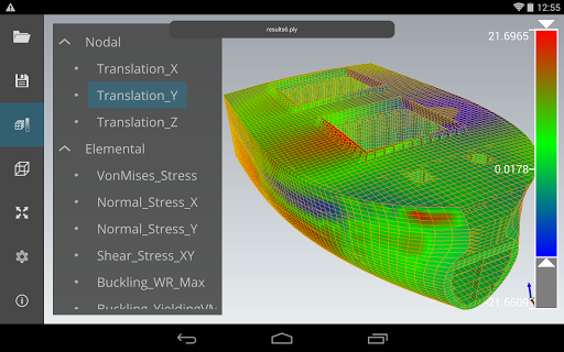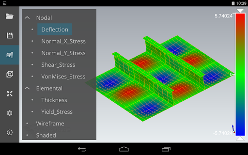 CAD Assistant memungkinkan Anda untuk melihat jala di wireframe, teduh, dan menyusut.Jika mesh berisi tekstur, warna, atau data skalar terkait, itu dapat dilihat dengan elemen yang diwarnai sesuai dengan properti yang dipilih.Untuk skala skalar skala warna interaktif ditampilkan, memberikan kontrol untuk memanipulasi kisaran jumlah yang ditampilkan.