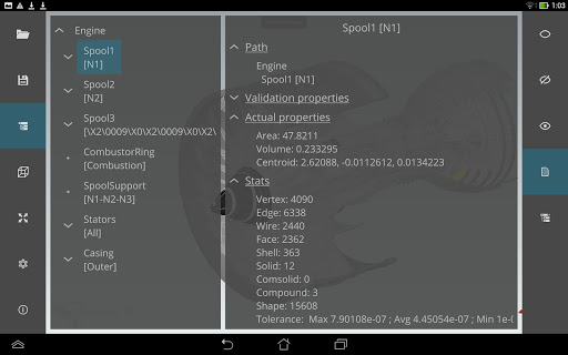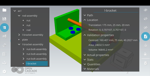 Open Cascade CAD Assistant untuk Android adalah penampil dan konverter offline untuk model CAD dan mesh 3D.