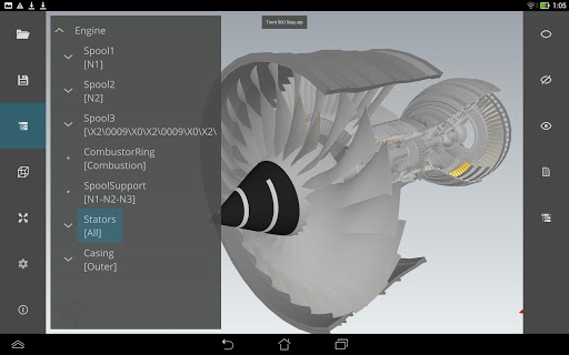 CAD Assistant for Android dioptimalkan untuk perangkat dengan multi-Touch layar dan menyediakan manipulasi intuitif dari tampilan 3D dengan gerakan jari.