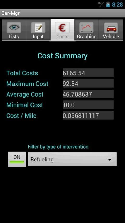 Berdasarkan data yang tersimpan Mobil-Mgr akan melakukan analisis biaya baik dalam bentuk numerik dan grafis dan dapat memprediksi tanggal dan jarak tempuh untuk intervensi selanjutnya.