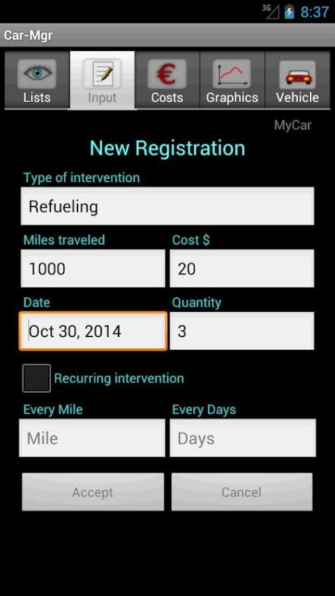 Dengan mobil-Mgr Anda dapat menyimpan semua tindakan perawatan biasa dan luar biasa,