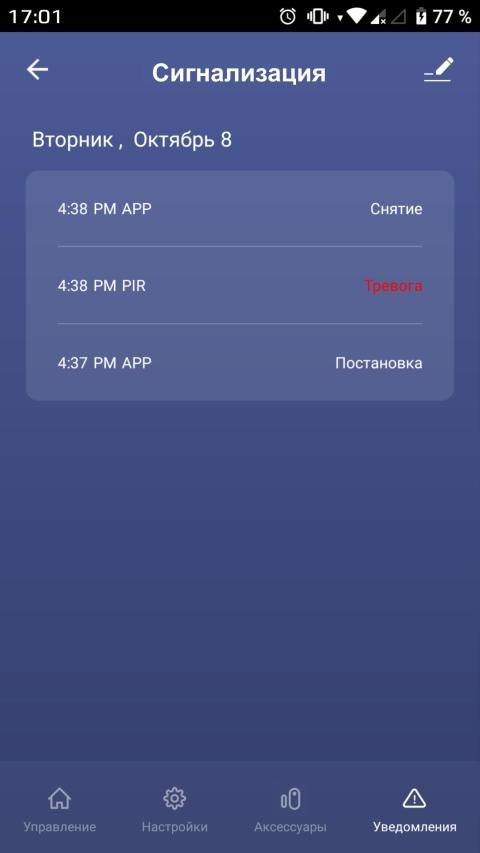 Получение быстрых уведомлений о работе системы и срабатывании тревожных датчиков в режиме реального времени.