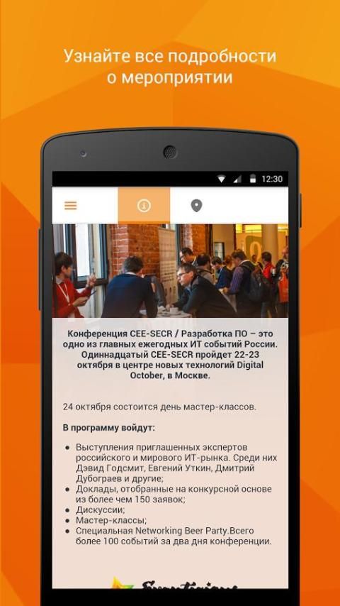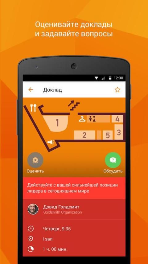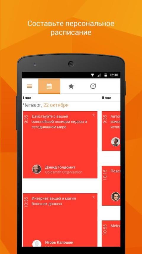 - составить собственную программу и получать оповещения о начале избранных докладов;
