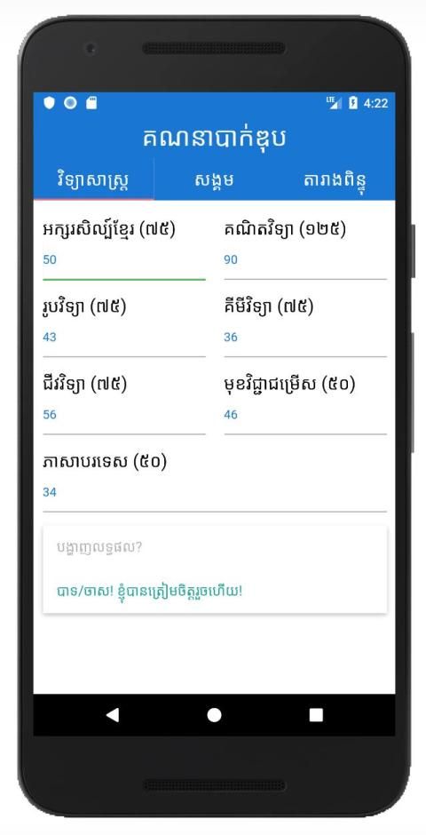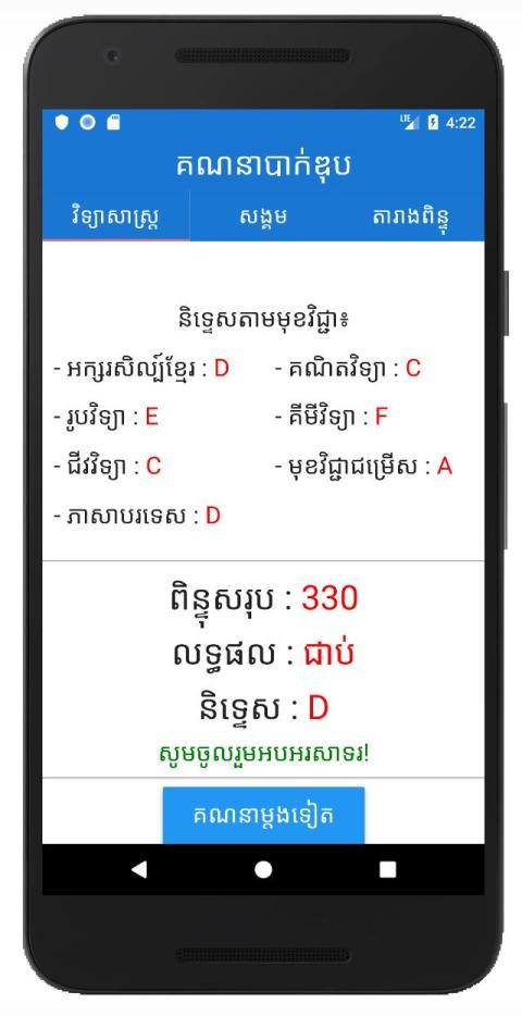 សាកល្បង គណនា លទ្ធផល បាក់ឌុប