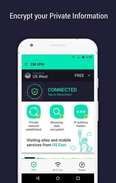 CM VPN Master (VPN Gratis) mengamankan koneksi perangkat Android Anda saat Anda terhubung ke hotspot Wi-Fi publik atau jaringan data seluler. Kata sandi dan data pribadi Anda diamankan dan Anda terlindungi dari serangan peretas.