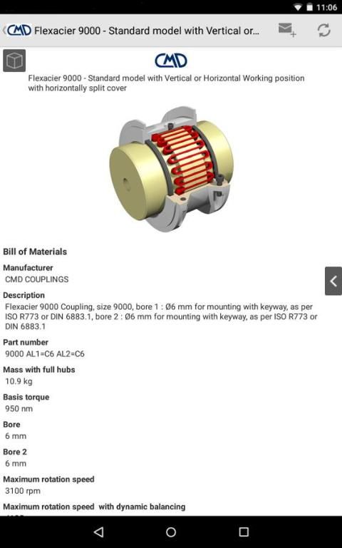 Dari aplikasi kita, CMD kopling, Anda dapat memiliki akses ke semua katalog kami dan memvisualisasikan semua model CAD dalam format dengan penampil 3D kami.