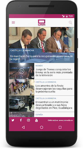 CMM es la aplicación oficial de Castilla-La Mancha Media, desde la que se puede acceder a: