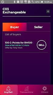 CO3 C-Tempat sekarang ditukarkan! Membutuhkan lebih banyak C-Points? Kepala ke pertukaran untuk membeli! Memiliki ekstra C-Points? Hanya menjual dan mendapatkan diri Anda beberapa Ringgit! Atau lebih baik lagi, menumpuk dan menjual setiap kali harga pasar adalah apa yang Anda senang dengan!
