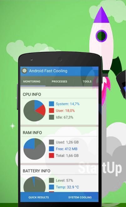 Cooler Master CPU Cooler Telepon Menganalisa penggunaan CPU secara dinamis, dan itu Mendeteksi aplikasi ukuran persegi overusing sumber daya sistem untuk melihat penyebab pemanasan ponsel