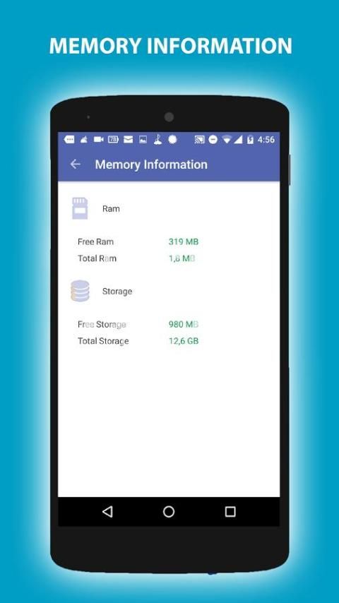 Memory: Jumlah dan tersedia RAM, serta informasi Storage tentang perangkat Anda.