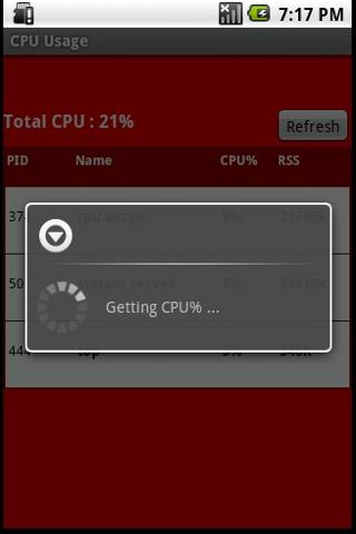 NEW 1.0.20 enable move to sd cardDisplay the CPU for all processes currently using the CPU. This takes a snapshot from top and displays PID, CPU, Name, and memory Used. check out CPU Usage Plus for no ads, auto refresh, and a widget leave a comment or email me if you have a suggestion