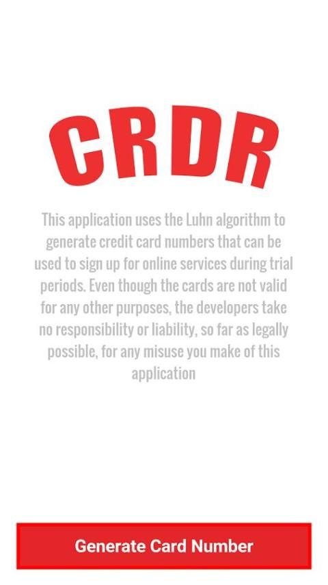 Aplikasi ini menghasilkan nomor kartu kredit palsu, mereka secara acak dan divalidasi dengan algoritma Luhn. Alat ini diciptakan untuk pengujian setiap situs web yang memungkinkan transacations kartu kredit dan melihat bagaimana memproses informasi. Banyak pengembang software menggunakan jenis alat untuk menguji proyek-proyek mereka sebelum mereka dilepaskan.