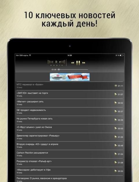 Semua real estat komersial di Moskow dan Rusia dalam satu aplikasi dan dalam format audio. Berita hari ini, dan pembukaan transaksi, tujuan, pendapat ahli, wawancara dan informasi di perusahaan industri - semua ini dapat didengar setiap hari pada CRE Radio.