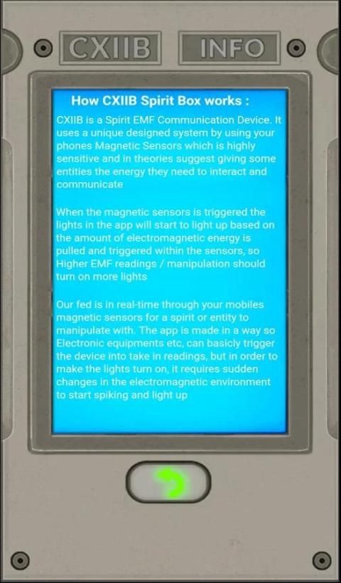 CXIIB EMF Ghost Box adalah alat profesional untuk mencoba komunikasi dengan entitas paranormal. Ini menggunakan sistem yang dirancang unik dengan menggunakan ponsel Anda