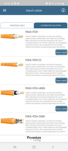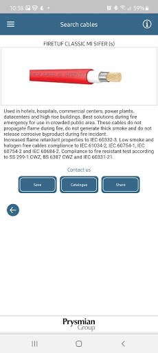 Dikembangkan oleh produsen kabel terkemuka dunia Prysmian Group, Cable App adalah alat yang mudah digunakan profesional yang membantu Anda memilih jenis solusi kabel terbaik tergantung pada jenis proyek dan instalasi. Ini menghitung penampang optimal yang memberikan saran yang berguna untuk uang dan penghematan CO2. Diperkaya oleh gambar dan dokumentasi teknis, ia menawarkan fitur tambahan seperti tautan langsung ke katalog produk, kemungkinan untuk dengan mudah menyimpan, mencetak, atau berbagi hasil dengan orang lain, dan akses ke berita dan video yang baru dirilis terkait dengan dunia pemasang listrik, profesional , dan konsultan dan insinyur. Ini menawarkan penelitian dengan atribut kabel dasar dan oleh parameter sistem profesional.
