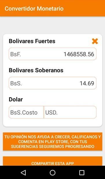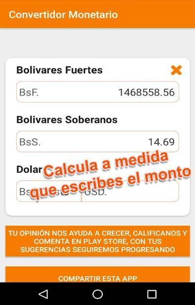 Transforma de Bolivares Fuertes a Bolivares Soberanos y dolares