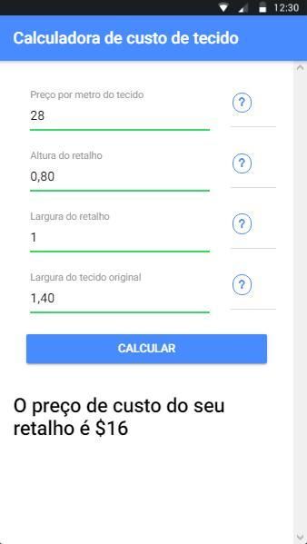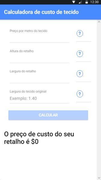 Esta é uma calculadora simples para você calcular o custo de seus retalhos utilizados em seus projetos de artesanato que utilizam tecido.