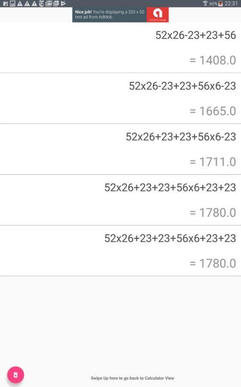 • Geser ke bawah pada layar untuk melihat sejarah. Menggesek ke atas / memukul kembali tombol untuk kembali ke Kalkulator tampilan.