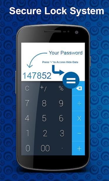 Sometimes you won't hand over your mobile on any one person because many sensitive data are in mobile and if those data are not safe then anyone can access your data. So now you can secure your data from unauthorized person easily because any unknown person picks your mobile for hacking purpose but cannot find data because it secures on the backend of the calculator.