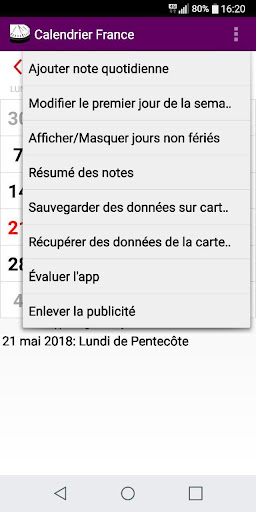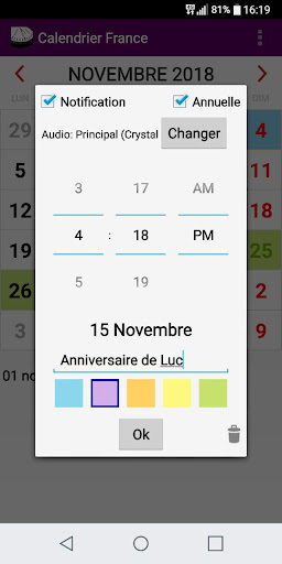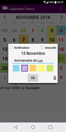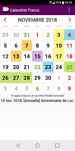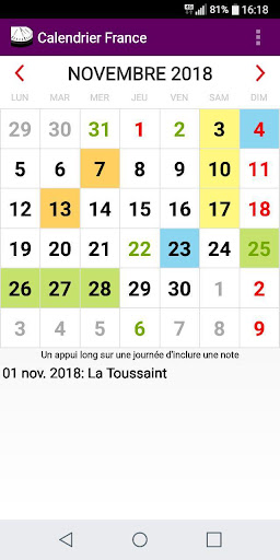 Kalender ini akan diatur ke hari masing-masing Tahun dengan perayaan dan hari libur baru di Prancis.