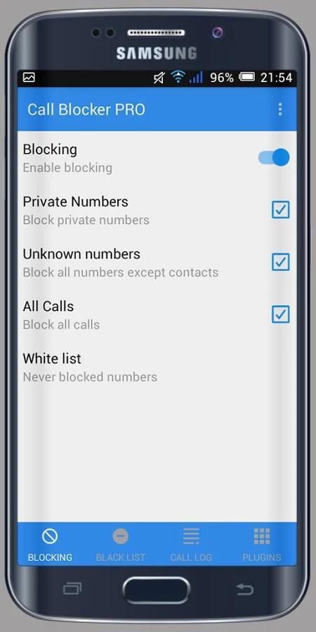 Anda dapat menambahkan nomor yang tidak diinginkan ke “Blacklist” dari panggilan log, daftar kontak atau memasukkan nomor secara manual. Juga, dengan menggunakan “Dimulai dengan” pilihan, Anda dapat memblokir berbagai nomor dengan digit pertama tertentu.