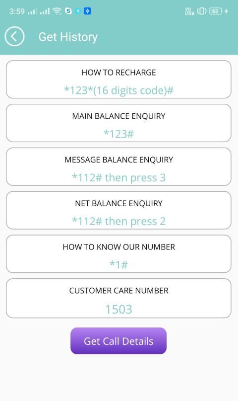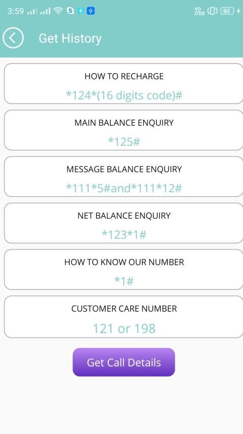 Cara mendapatkan rincian panggilan dari aplikasi nomor apa pun membantu pengguna telekomunikasi prabayar India untuk menemukan nomor untuk operasi tertentu seperti Isi Ulang, Utama, Pesan, pertanyaan Saldo Neto, Menemukan nomor sendiri dan nomor layanan Pelanggan.