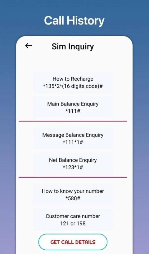 Complete Information about how to check call history other number. How to get call details of any number application helps the Indian prepaid telecom users to find the numbers for specific operations like Recharge, Main, Message, Net Balance enquiry, Finding own number and Customer care number. As of now app supports telecom operators like Airtel, Aircel, Idea, Vodafone, Uninor, Tat Docome, BSNL and Reliance.