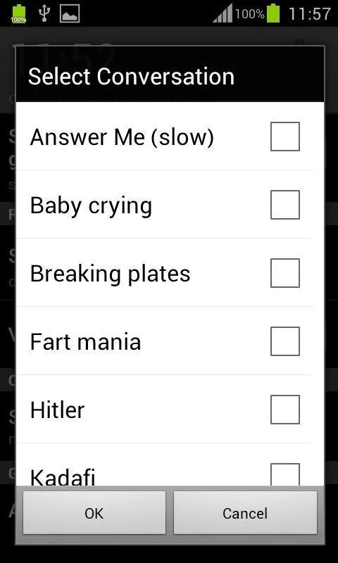 * Select one of our built-in conversation sounds to be played after answering the call. great way to prank people!