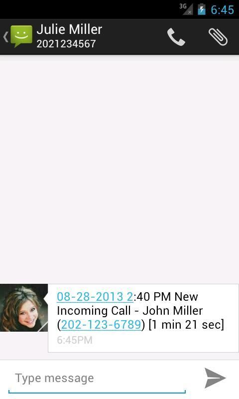 Ketika Anda membuat, menerima atau kehilangan panggilan telepon Anda dapat mengirim pesan ke: