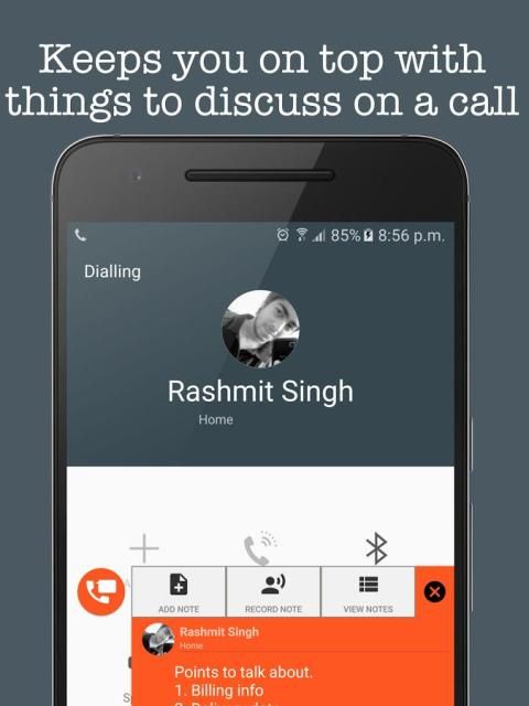 catatan panggilan adalah untuk siapa saja yang secara teratur merasa perlu untuk mencatat catatan ketika pada panggilan. catatan panggilan akan membantu Anda mengambil orang-orang penting dalam catatan panggilan. Di saat-saat ketika Anda mencari pena untuk menulis alamat atau nomor telepon atau pengingat ketika Anda sedang menelepon, Call Notes akan datang untuk menyelamatkan Anda.