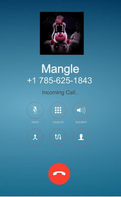 Sebut Prank Mangle dari Fredy lima malam, panggilan dari Call Prank Mangle dari Fredy lima malam adalah sebuah aplikasi untuk menampilkan Mangle Anda dari Fredy lima malam.