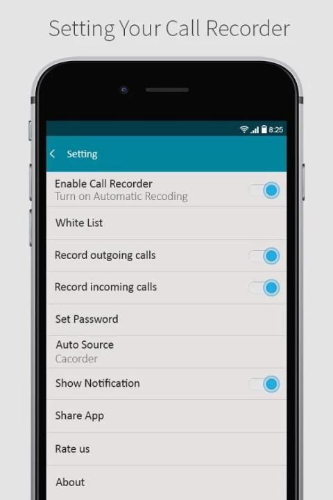 Seluruh panggilan dicatat dan disimpan di telepon Anda. Tidak seperti aplikasi merekam panggilan lain rekaman Anda pribadi dan tidak disimpan di server pihak ketiga.