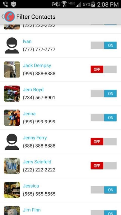 - Kemampuan untuk menyaring kontak. Anda dapat mengabaikan percakapan telepon dari kontak yang dipilih.
