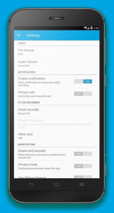 - perekam panggilan otomatis untuk masuk / keluar dan untuk panggilan dengan nomor yang tidak dikenal tidak termasuk dalam Kontak Anda