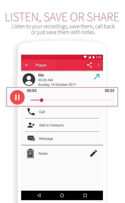 - Share, menyimpan rekaman telepon atau Putar kembali kapan saja