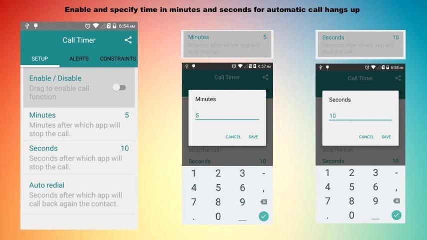 Mengapa diperlukan? Banyak operator jaringan atau jasa telekomunikasi menawarkan panggilan gratis untuk pertama 5, 10, 20, menit xx. Jika Anda tidak ingin memonitor waktu yang telah berlalu dan manual hang-up panggilan saat berbicara, maka Anda dapat memiliki aplikasi ini melakukannya untuk Anda.