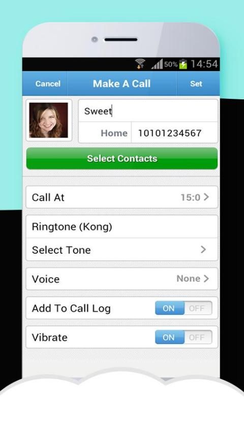 menjadwalkan panggilan palsu atau sms.