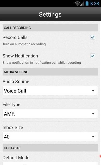 The recorded calls are saved in the inbox. You can also change the destination folder of recordings to an external SD card. The size of the inbox can be set. The number of recorded calls is limited only by the memory of your device.