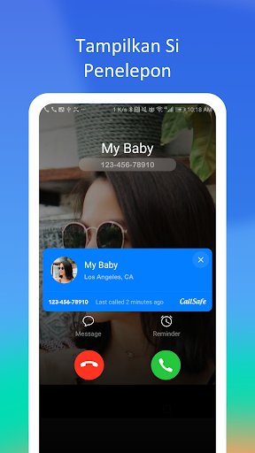 CallSafe dengan segera mengidentifikasi panggilan dari nomor tak dikenal, memudahkan pengguna menyortir setiap panggilan telepon. ID Pemanggil akan ditampilkan untuk panggilan tak terjawab, memungkinkan pengguna memutuskan apakah perlu membalasnya. CallSafe dapat membantu mengidentifikasi dan menyediakan rincian informasi meski tanpa koneksi internet.