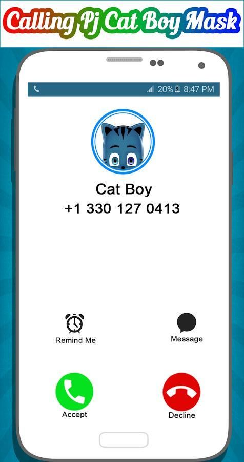 panggilan palsu ini dari pj catboy masker simulator membiarkan Anda mendapatkan panggilan palsu dari tim masker pj dan berpura-pura berbicara dengan pj masker di telepon dan mengejutkan teman-teman Anda, bermain ini doh game memberikan pilihan Anda untuk personalisasi panggilan palsu dari anak kucing dengan memilih durasi, selain pilihan catboy dan owlette suara yang pj ini kucing anak pahlawan berpura-pura panggilan menyediakan dalam tim masker pj memanggil aplikasi dan bermain game doh untuk membiarkan Anda prank freinds Anda dengan mudah saat Anda mendapatkan panggilan masuk dari pj catboy dan owlette masker dengan membuat dapat berpura-pura berbicara dengan para pahlawan pj di telepon dan memukau teman-teman Anda. Mensimulasikan panggilan palsu dari pahlawan pj favorit Anda! Sekarang dan berkat ini masker pj simulator panggilan palsu Anda dapat mensimulasikan panggilan palsu dari pembicaraan iklan tim pahlawan pj untuk catboy dan owlette di telepon untuk mengejutkan teman-teman Anda dan biarkan mereka mengagumi tentang ini pahlawan pj lucu dan bermain game doh. Dengan pj ini catboy panggilan prank Anda akan dapat mempersonalisasikan panggilan palsu dari masker pj pahlawan dan mendapatkan panggilan palsu dari pj owlette dan catboy masker pada ponsel Anda dan memukau akan teman Anda