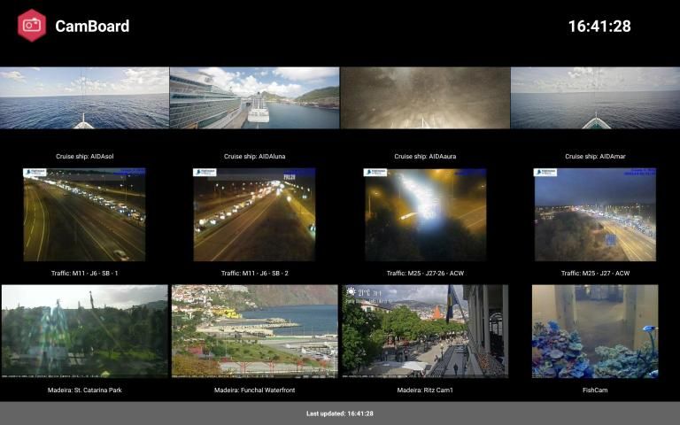Aplikasi sederhana ini menampilkan gambar dari hingga 12 webcam layar penuh.