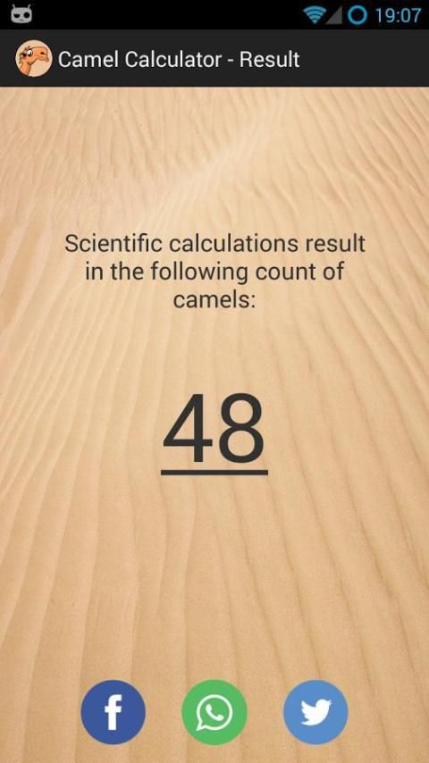 Dengan aplikasi ini Anda dapat menghitung berapa banyak unta yang akan Anda dapatkan untuk boy- atau pacar.