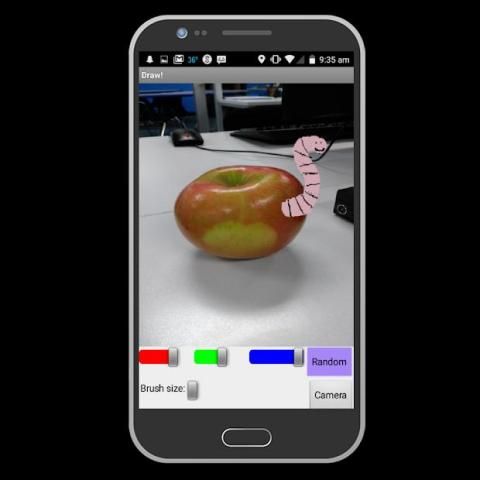 Camera Draw app lets you take a picture and draw on it with brushes of different thickness, any color imaginable, random colors, and you can also save the picture to your device or share it with friends using other apps on your android device.