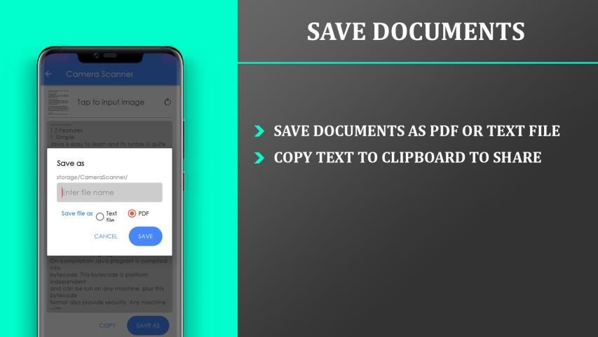 camera scanner - image scanner scan quickly with one click and provides option to save scanned text as PDF file with just one click.
